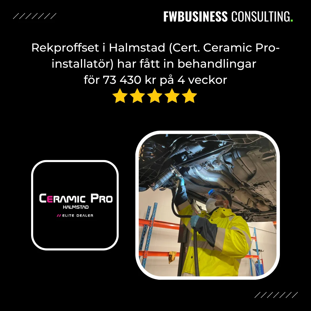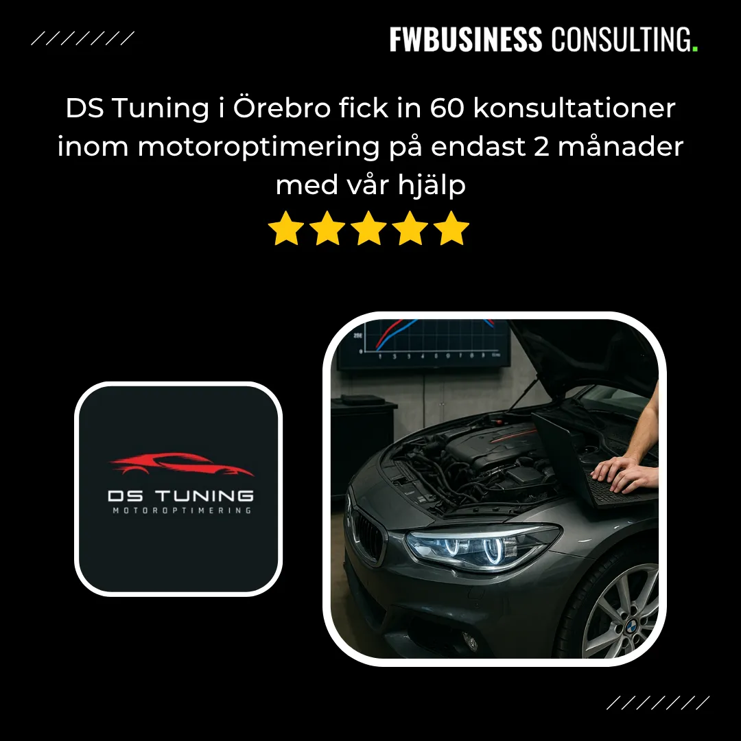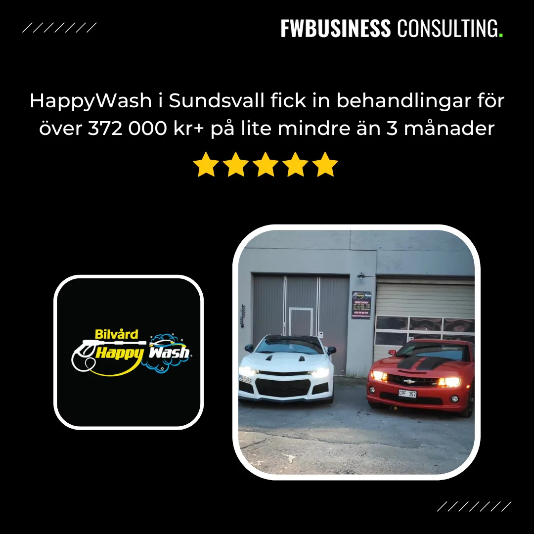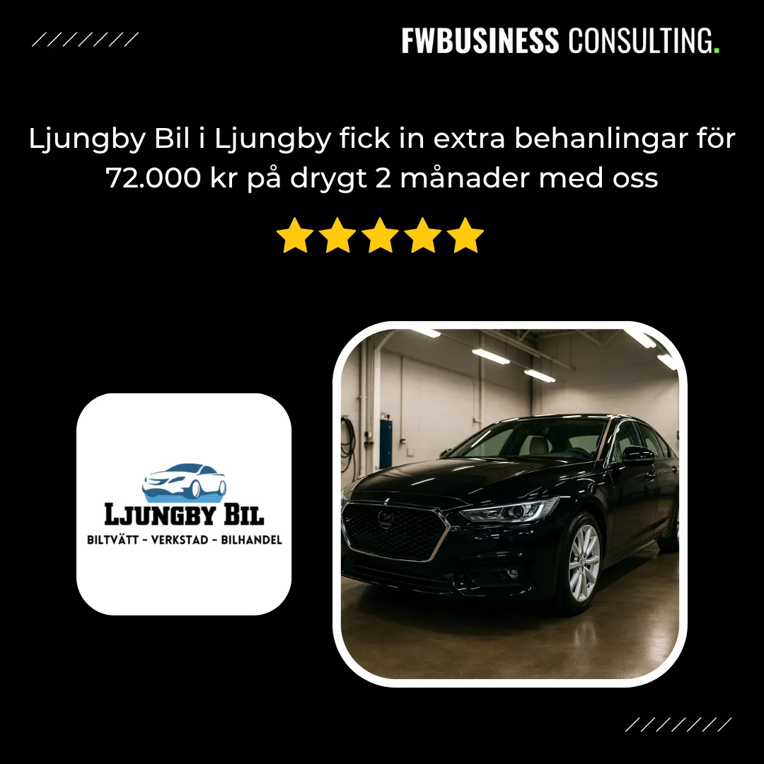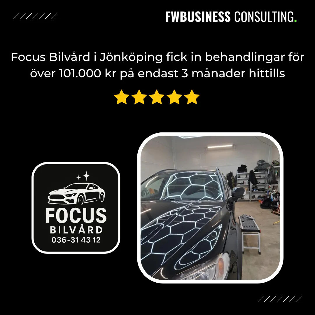 "Att arbeta med FW Business Consulting har verkligen varit en game-changer för oss på DGT Wrap & Detailing. Deras skräddarsydda lösningar och strategiska rådgivning har hjälpt oss att effektivisera vår verksamhet och locka fler kunder. Tack vare deras insatser har vi ökat våra lackskyddsjobb med 30-40 extra per månad. Jag är imponerad av deras professionalism och ser fram emot att fortsätta utveckla vår verksamhet tillsammans med deras hjälp."