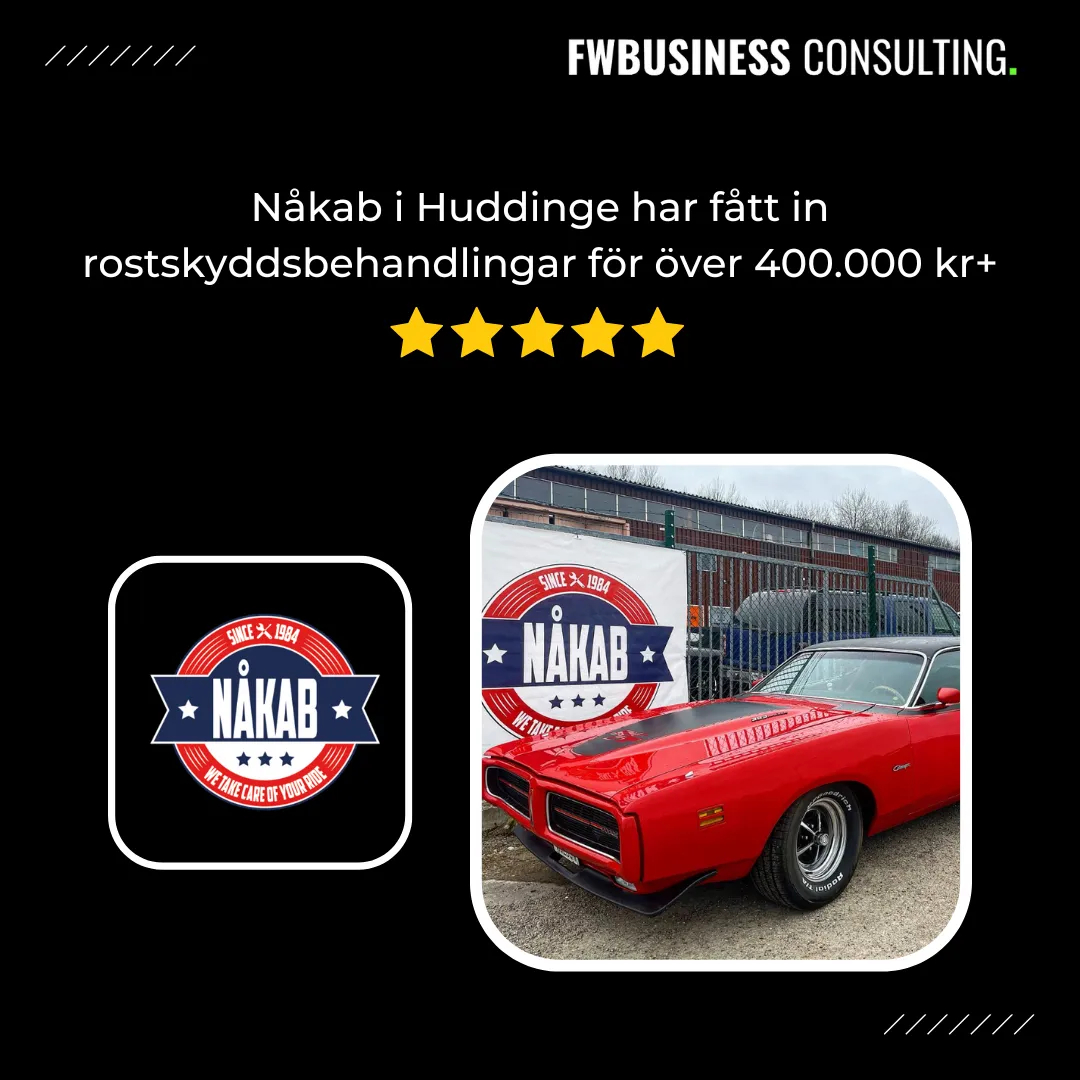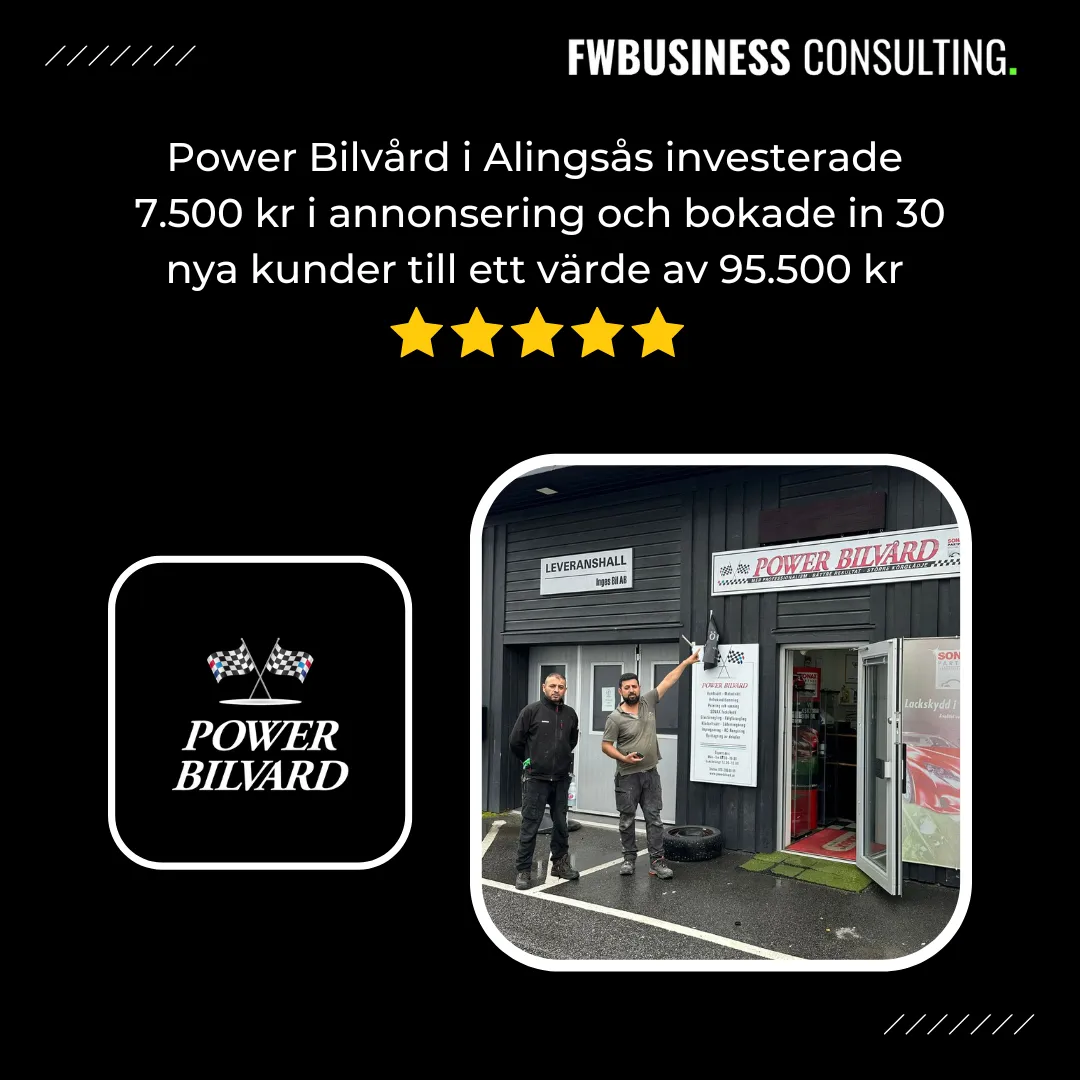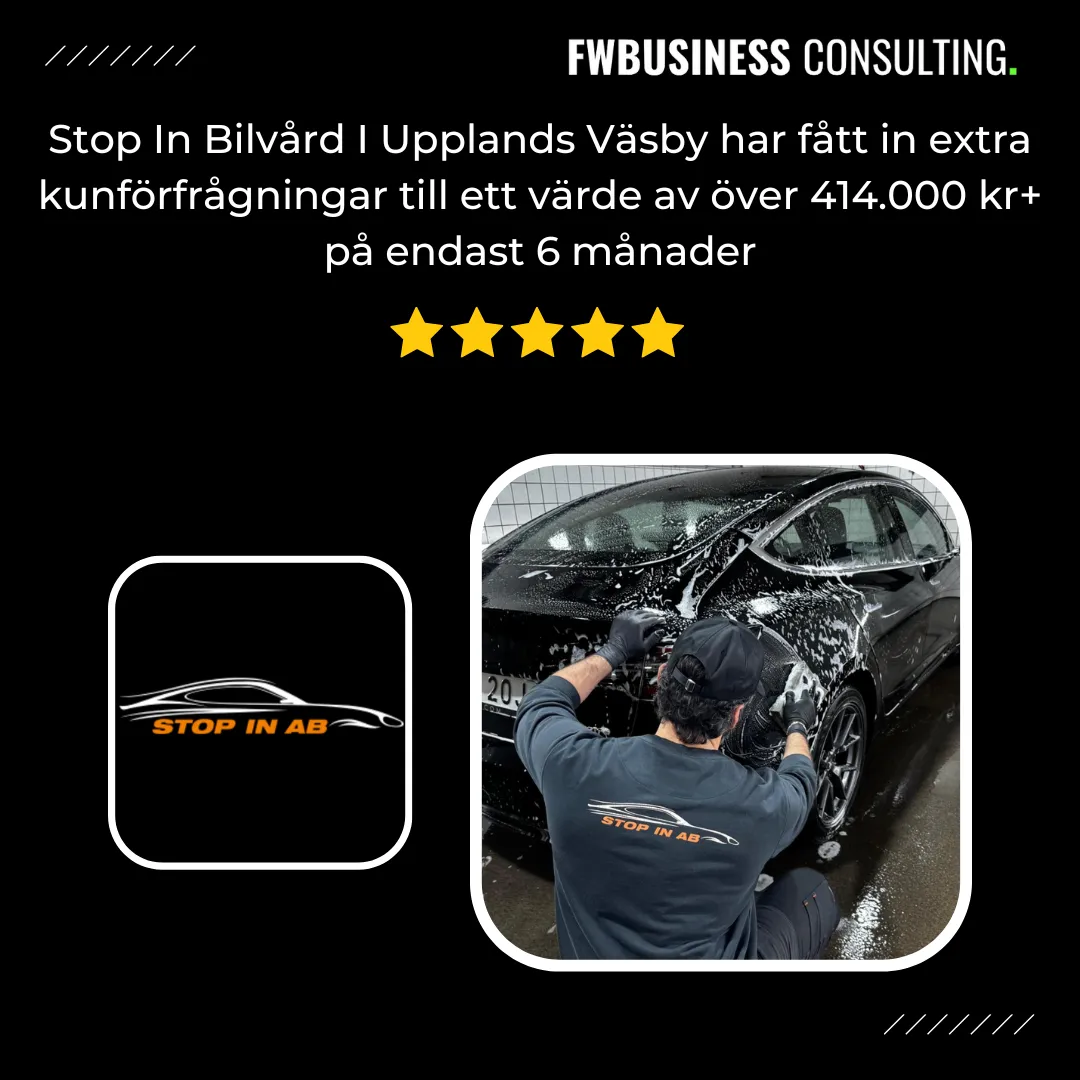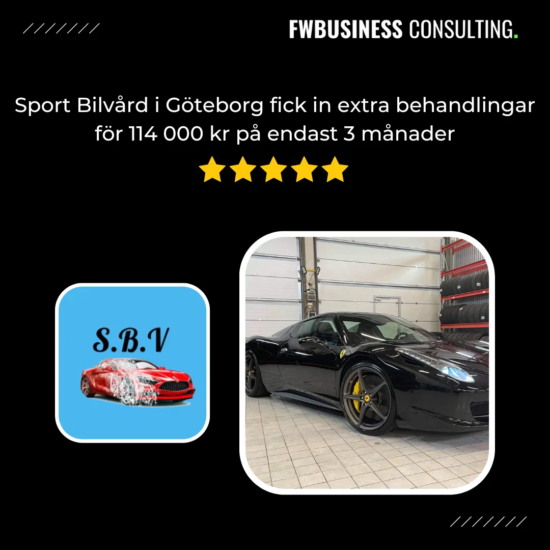 "Vi på Shine & Wrap har haft nöjet att arbeta med FW Business Consulting och deras expertis har verkligen gjort skillnad för oss. Genom deras strategiska rådgivning och affärsutvecklingstjänster har vi sett en märkbar ökning i våra PPF-installationer – hela 6 extra per månad. Deras skräddarsydda lösningar och insiktsfulla tillvägagångssätt har hjälpt oss att växa och optimera vår verksamhet. Vi är tacksamma för deras stöd och ser fram emot fortsatt framgång tillsammans."